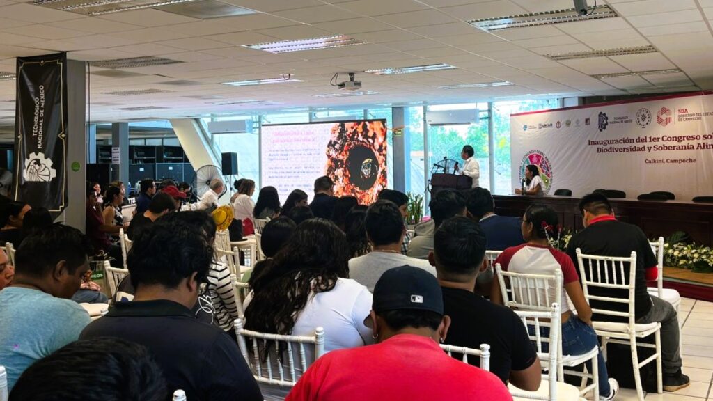 La ponencia destacó la importancia de la abeja Melipona beecheii, especie endémica de la región, y su relación con el patrimonio cultural y natural de Campeche. Durante la presentación, se abordaron los conocimientos ancestrales en torno a la meliponicultura, práctica tradicional de crianza de estas abejas sin aguijón, subrayando la necesidad de preservar los saberes comunitarios que han sido transmitidos por generaciones.
