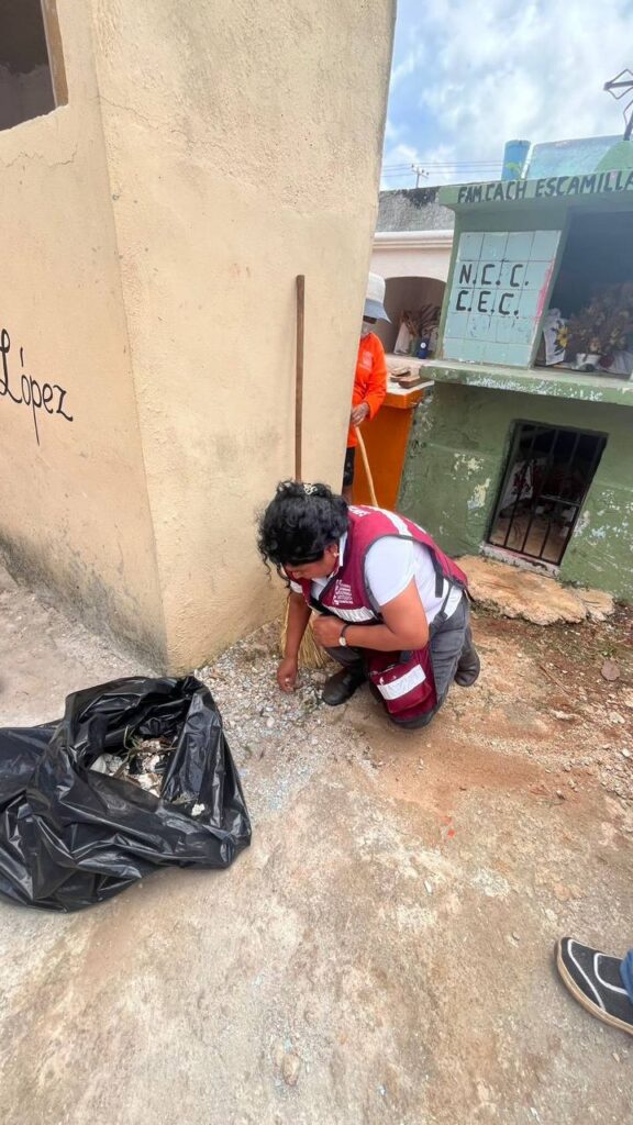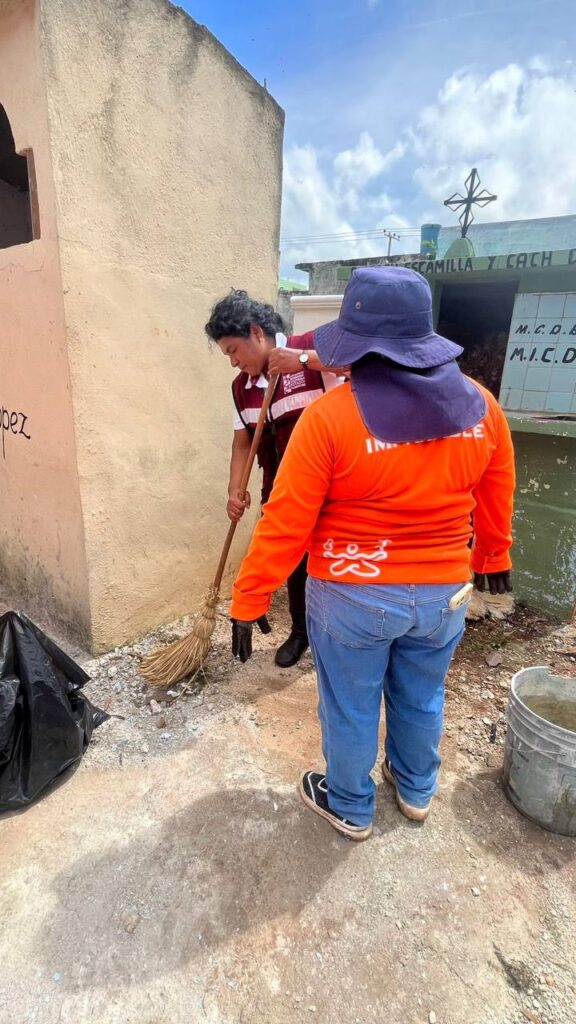 Como parte de las acciones de salvaguarda del patrimonio cultural inmaterial y en el marco de los preparativos para el festival de Día de Muertos “Pomuch para el Mundo” en su edición 2025, personal de la Autoridad del Patrimonio Cultural del Estado de Campeche (APCEC), encabezados por la directora de Patrimonio Material e Inmaterial, Mtra. Lucy Concepción Chan Miss, reforzaron las labores de limpieza y mantenimiento en los cementerios de la comunidad maya de Pomuch, municipio de Hecelchakán.
