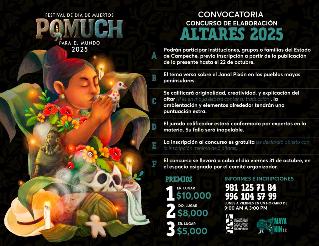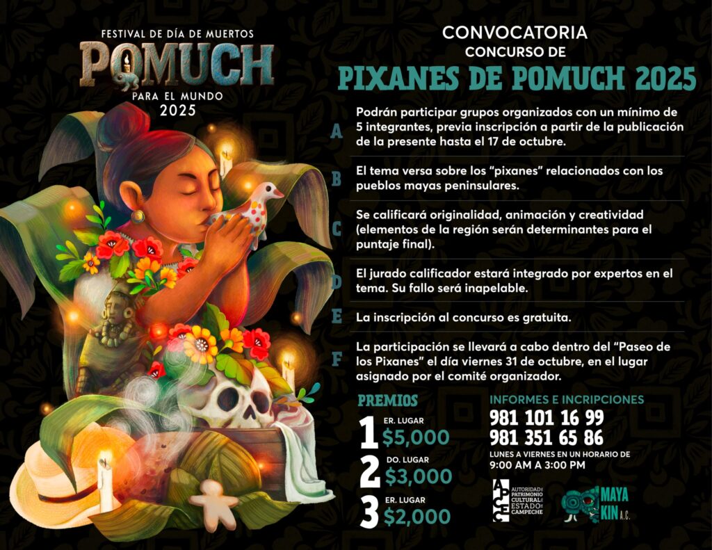 La Autoridad del Patrimonio Cultural del Estado de Campeche (APCEC), a través de la Dirección de Patrimonio Material e Inmaterial, presentó ante los medios de comunicación las convocatorias oficiales del festival de Día de Muertos “Pomuch para el Mundo” 2025, que se llevará a cabo el próximo 31 de octubre.